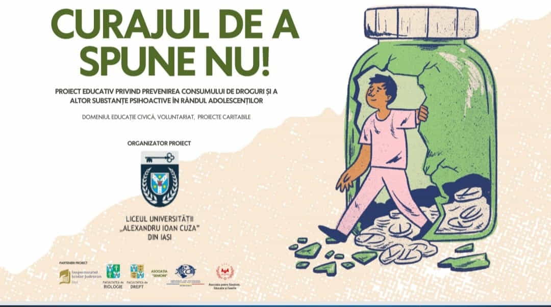 Școala Gimnazială Lețcani a avut onoarea de a participa la proiectul județean "Curajul de a spune NU!" organizat de Liceul Universității "Al .I. Cuza" și partenerii: Facultatea de Biologie, facultatea de Drept, D.I.I.C.O.T., ONG-uri și alți specialiști din sfera juridicului sau științelor biomedicale, care s-a desfășurat în perioada februarie 2025- mai 2025. Proiectul a cuprins mai multe secțiuni: *diseminarea informațiilor* (în martie- aprilie) despre pericolul consumului de alcool, tutun, droguri sau alte substanțe psihoactive, care din păcate a luat forma unui fenomen social în țara noastră, populația cea mai expusă acestui comportament fiind cea tânără; *participarea activă* a elevilor (din clasa a VIII-a A) și cadrelor didactice *la* *Webinarul* organizat pe ZOOM pe 14 aprilie 2025 și *Conferința* organizată miercuri, 14 mai 2025 în Aula Magna a Universității "Al. I. Cuza" Iași, unde pe lângă informațiile teoretice transmise de invitați, elevii școlilor participante au prezentat propriile lucrări și ceea ce gândesc despre acest fenomen. Elevii școlii noastre, alături de celelalte 10 unități școlare participante, au răspuns afirmativ și acestei provocări, au avut o contribuție deosebită, au fost apreciați și încurajați să continue, să se implice activ în comunitatea de unde provin și să spună NU anturajelor periculoase și consumului nociv, sub orice formă ar fi acesta!