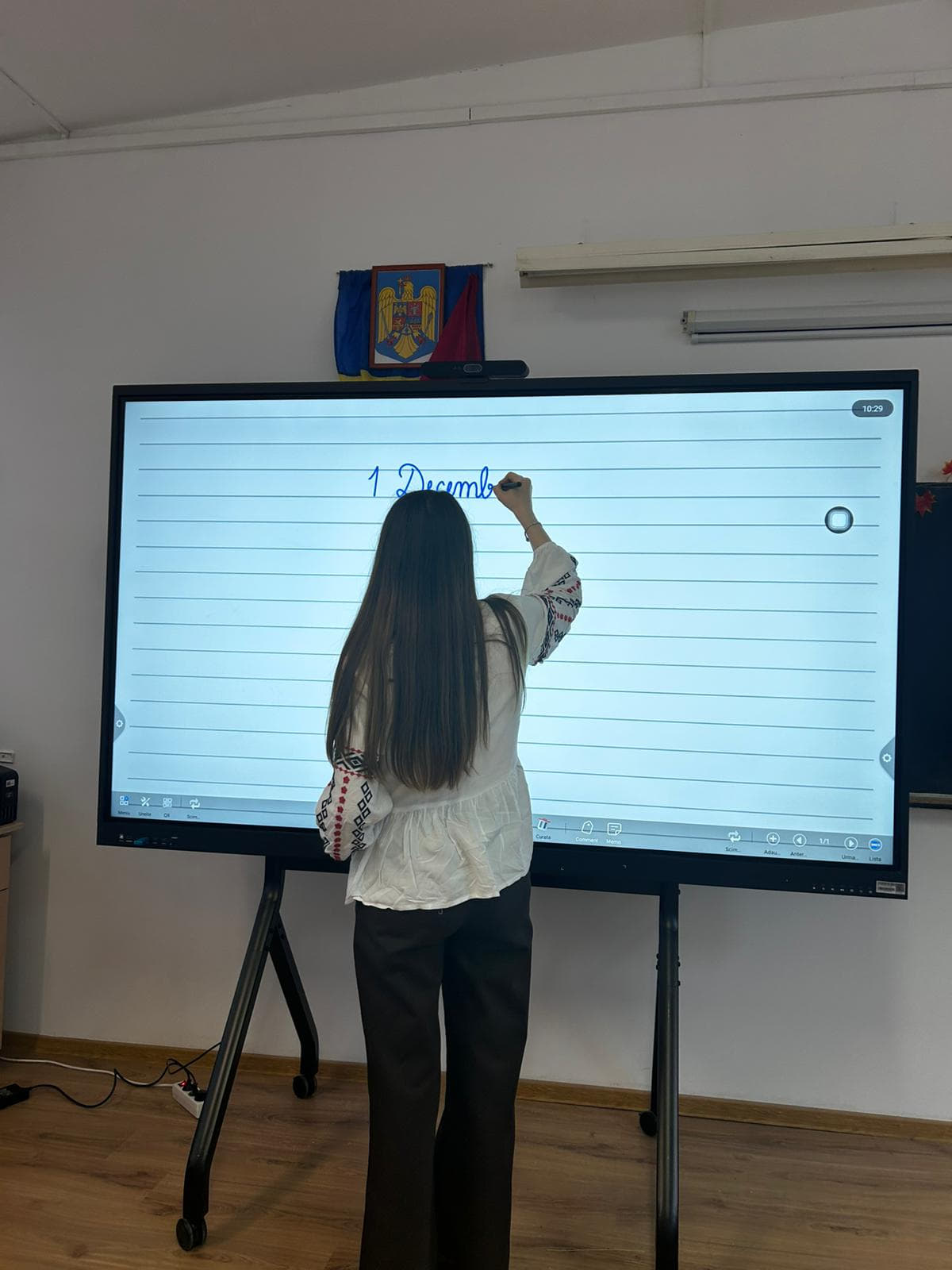 • o tablă nouă digitală interactivă, prevăzută cu sistem audio tip soundbar și cameră pentru videoconferință;